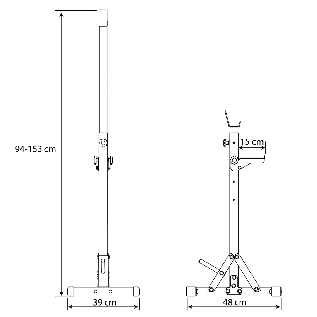 Стійки мають семиступеневе регулювання висоти, отвори для фіксаторів розташовані з інтервалом 10 см, що дає можливість точно підібрати обладнання під свій зріст. Після налаштування на відповідну висоту стійку зафіксуєте за допомогою притискних гвинтів – це гарантія безпеки під час тренування. Звукоізоляційний матеріал має на меті не тільки приглушити звук відкладення штанги, але й запобігти її подряпинам.