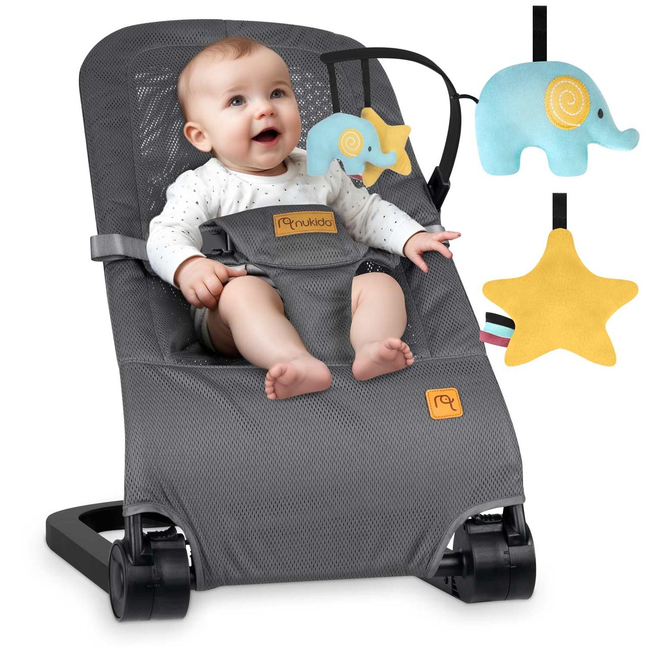 Крісло-гойдалка для немовлят Nukido з іграшками, 72 х 45,5 х 41-62 см - сіра